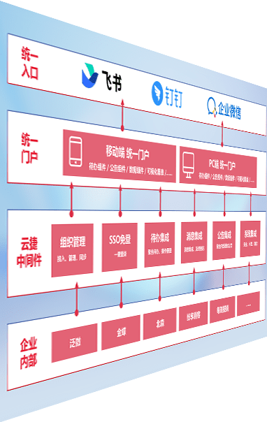 对协作平台提供支持服务,,,支持企业应用与协作平台对接,,,,包含组织同步、、、消息集成、、待办集成等。。。支持目前主流的协作平台:钉钉、、企微和飞书。。